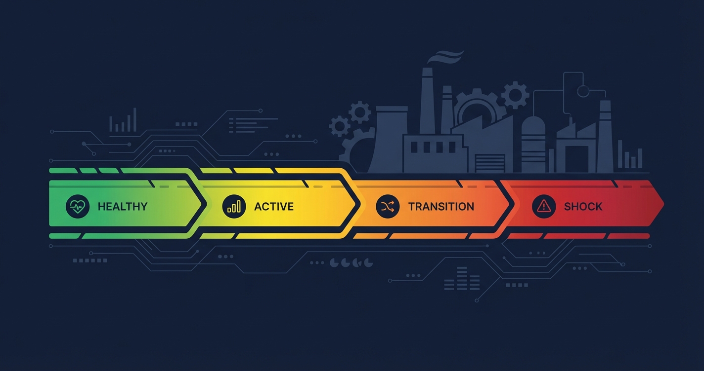 What engineers actually need is a graded signal. Is the machine healthy and operating normally? Is something starting to change? Is it actively degrading? Is an imminent failure likely?